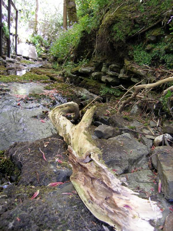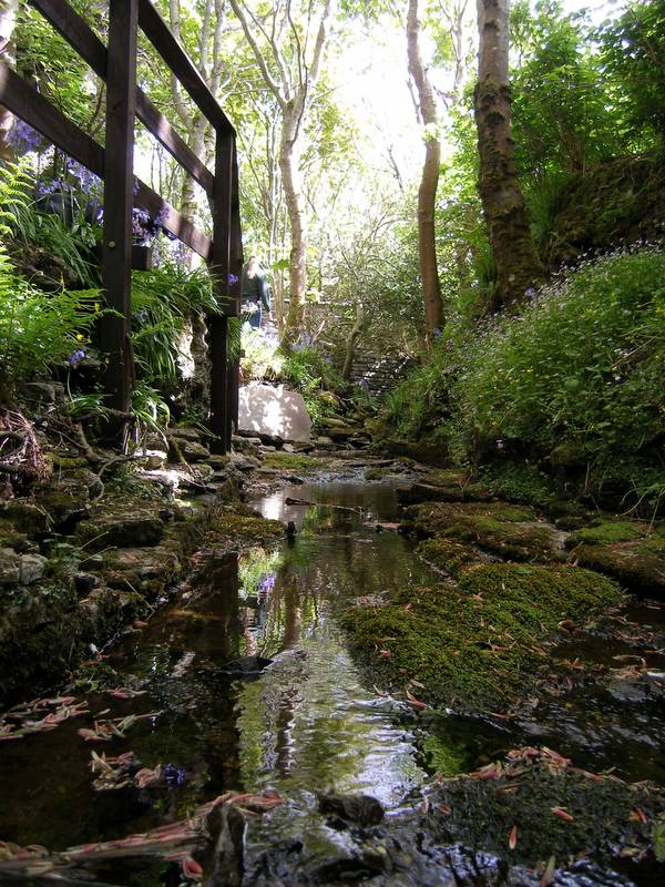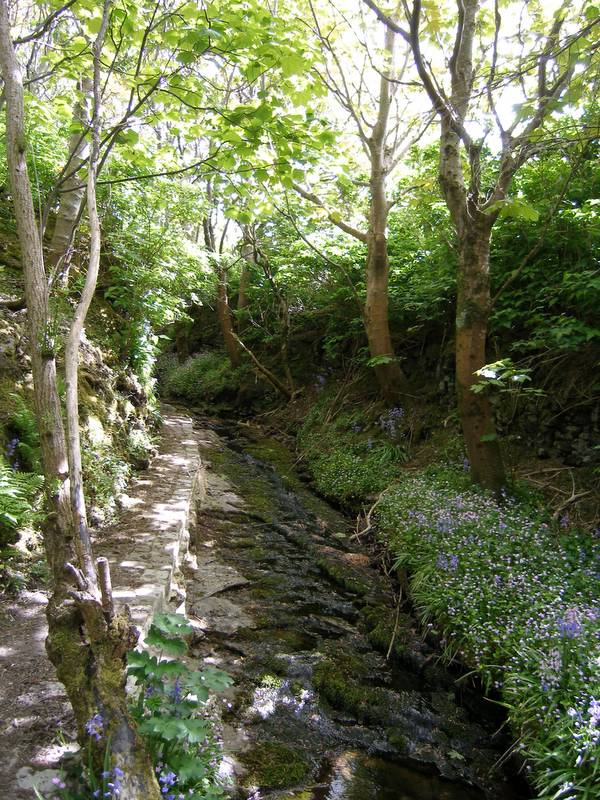 Little trout pootle around in the shallow cool water, darting between patches of sunlight and shade in the stillness. Trees stretch their green fingers towards the sun and swathes of bluebells carpet the woodland floor.