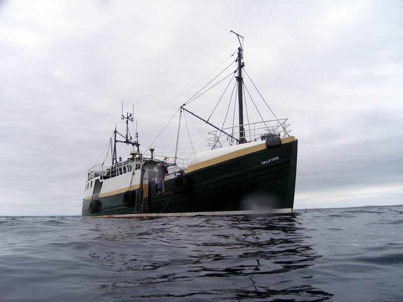 Leaving the mirror calm waters of Scapa Flow at 2am we aim to catch the tide through rather than fight it all the way. Cold sterile clean light begins in the east and soon shapes and islands loom from the inky blackness. Rounding the bottom of South Ronaldsay and the gentle swell lulls us into a false sense of security, but soon enough we are bouncing like a bucking bronco. Divers stagger out of their beds to feed the fish over the railings and i play catch in the galley as things go hurtling past.
