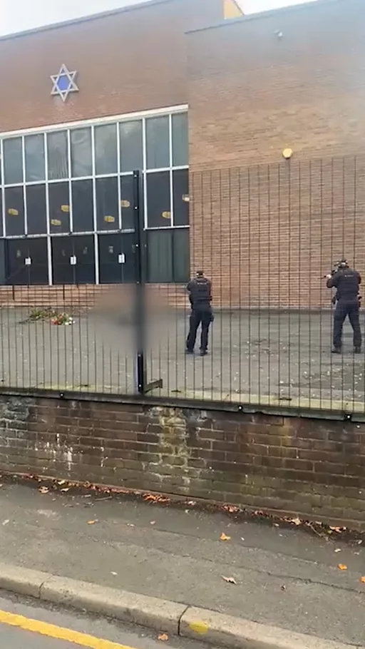Na snimku, koji je analizirao BBC tim za utvrđivanje činjenica, vide se naoružani policajci kod sinagoge kako stoje iznad osobe koja leži na zemlji.