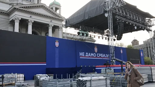 Pripreme za takozvani svesrpski skup u Beogradu trajale su od četvrtka uveče - postavljene su tri bine, zatvorene brojne ulice i izmenjene trase linija gradskog prevoza.