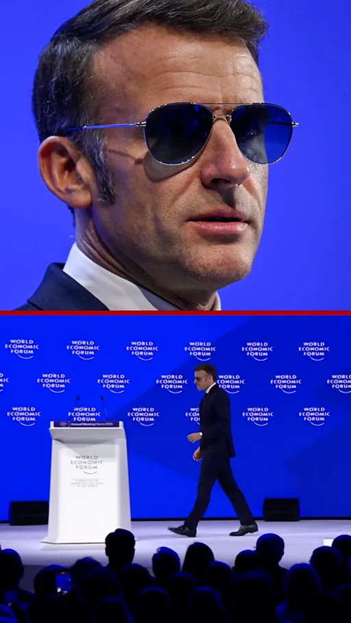 Francuski lider je nosio plave pilotske naočare za sunce u zatvorenom prostoru dok se obraćao svetskim liderima na Svetskom ekonomskom forumu.