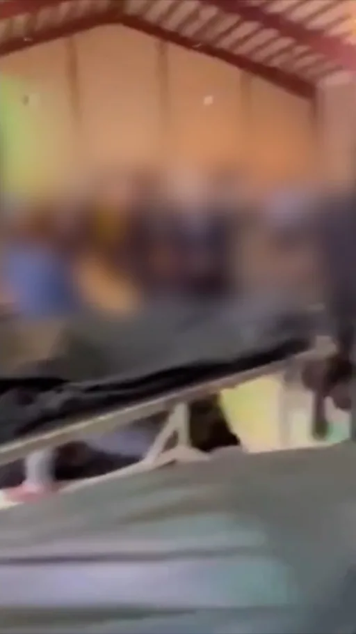 Jedan snimak prikazuje unutrašnjost magacinskog prostora gde je više tela, dok drugi prikazuje kamion iz kojeg ljudi vade leševe.