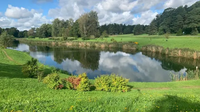 Zelena površina okupana septembarskim suncem okružuje vodenu površinu u kojoj se ogleda okolno drveće.