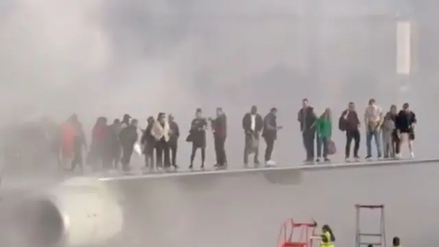 Na društvenim mrežama pojavili su se snimci na kojima se vidi kako su putnici hodali na ivici krila aviona, dok se veliki oblaci crnog dima šire.