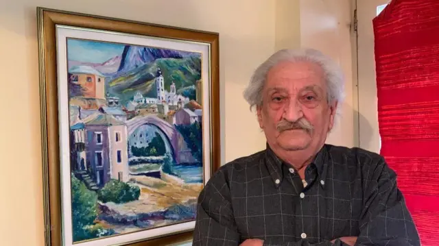 „Написали су мали текст о мени и објавили целе 'Мостарске кише'", руком показује примерак часописа умотан у провидну фолију.
