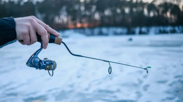 Ni hladno vreme ni zaleđeno jezero nisu prepreka za pecanje.