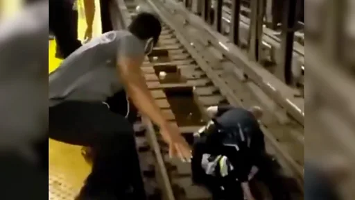 Погледајте видео - Полицајац у Њујорку спасио путника који је па на шине