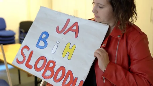„Danas prestajemo biti nevidljivi i poručujemo da ćemo se hrabro i dostojanstveno boriti za naše živote koji ne mogu biti među četiri zida", rekla je Lejla Huremović iz organizacije Povorke ponosa.