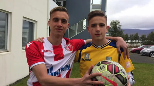 „Ovaj mali je opasan igrač, nego mu je iskočilo koleno, pa mora da se odmara", kaže Đorđe, prošlogodišnji Zvezdin omladinac, za BBC na srpskom, koji je posetio fudbalersku porodicu iz Niša, koja već godinama živi u Rejkjaviku.