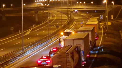 Na tom putu naišao je i na nekoliko vozila napuštenih nasred puta.