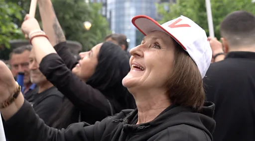 Tu negde u masi, dok opozicioni lideri drže govore, među stranačkim i državnim barjacima vijori se i crvena Ferari zastava, jedan od najvećih simbola tog protesta.