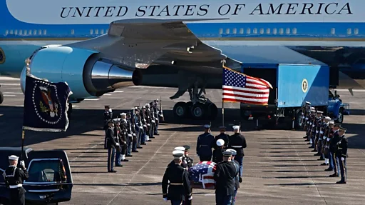 Tri sata nakon što su se okupili zvaničnici, visoki politički predstavnici, porodica i prijatelji da odaju počast predsedniku Džordžu Bušu starijem, stigli su i sadašnji predsednik i prva dama SAD.