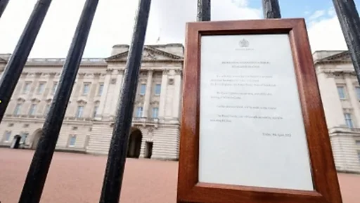 Zastava na Bakingemskoj palati spuštena je na pola koplja, a na kapiju je okačeno obaveštenje o smrti vojvode od Edinburga.