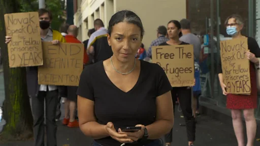 BBC novinarka Šaima Halil izveštava da su se i navijači Đokovića, ali i aktivisti, okupili ispred hotela, držeći transparente: „Novak, digni glas o ljudima sa kojima si u hotelu a koji su godinama zatvoreni", „Stop prinudnom pritvaranju", „Oslobodite izbeglice".