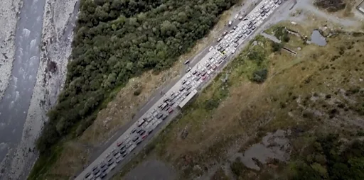 Na nedavno nastalim satelitskim snimcima mogu se videti kilometarski redovi na izlasku iz Rusije.