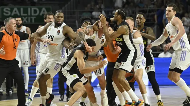 Serhio Ljulj, igrač Reala, napravio je grub prekršaj na kapitenu Partizana Kevinu Panteru, posle čega je došlo do koškanja njih dvojice.