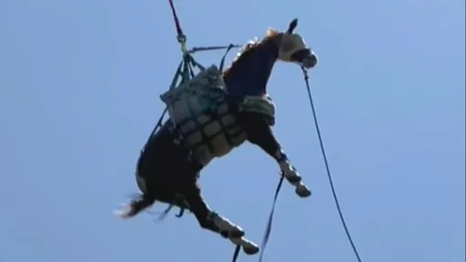 Ostaje nejasno kako je konj po imenu Hudini uspeo da se oslobodi, a bio je toliko uznemiren da su ga po sletanju aviona jedva obuzdavali.