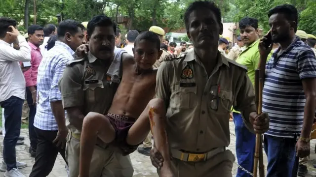 Na nekima se vidi kako se povređeni vode u bolnicu kamionetima, rikšama i na motorima.