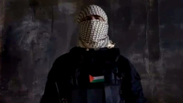 Čovekova potpuno crna odeća ne slaže se sa tipičnim militantnim izgledom koji se povezuje sa portparolom Hamasovog vojnog krila Brigade Al Kasam.