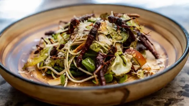 Na jelovniku je salata sa dve madagaskarske bubašvabe postavljene preko lišća i čeri paradajza, izdašna porcija sladoleda sa tri sićušna skakavca na njoj, pa čak i koktel sa alkoholom pravljenim od izmeta svilenih buba.