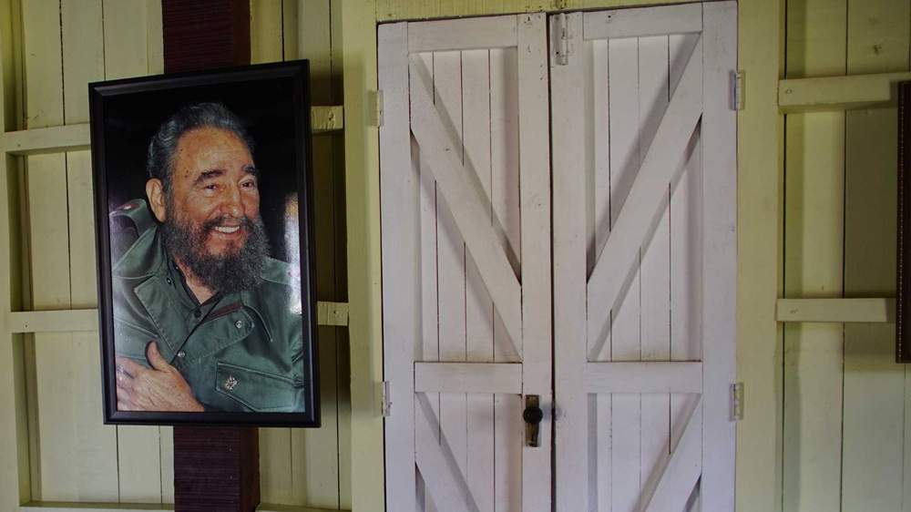 У том тренутку пролази водич и понавља туристима званичну причу – о томе како се слика сиромашних и сунцем опаљених хаићанских најамних радника на плантажама шећерне трске снажно урезала у свест браће Кастро.