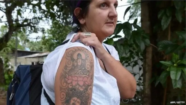 සිය බාහුවේ ඉහළ කොටසේ බුදුරුව සහිත පච්චයක් (tattoo )කොටා තිබුණ හෙයින් අත්අඩංගුවට ගෙන 2014 වසරේ ශ්රී ලංකාවෙන් පිටුවහල් කරන ලද බ්රිතාන්ය කාන්තාවට වන්දි ගෙවන ලෙස ශ්රී ලංකා ශ්රේෂ්ඨාධිකරණය නියෝග කළේය.