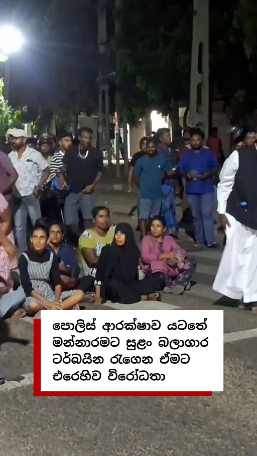 පොලිස් කැරලි මර්දන කණ්ඩායම් යොදවාගෙන මන්නාරම නගරය වෙතට සුළං බලාගාර ටර්බයින හා අනෙකුත් උපකරණ සහිත වාහන රැගෙන විත් ඇති බව ප්රදේශවාසීන් සඳහන් කළේය.