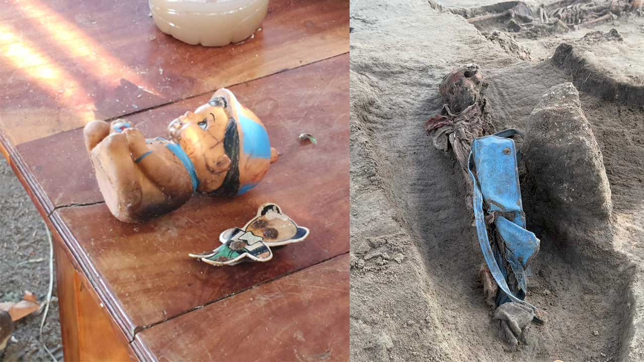 මෙම කැණීම්වලදී මේ දක්වා භාණ්ඩ කිහිපයක් හමුවී තිබේ. ඒ අතර, රබර්වලින් සකස් කරන ලද බෝනික්කෙකු, සපත්තු යුගලක්, කුඩා දරුවන් පළඳින වළලු දෙකක්, කුඩා දරුවන්ගේ කිරි බෝතලයක්, පාවහන් කොටසක්, ඇඳුම් කොටස් කිහිපයක් හා තවත් ද්රව්ය කිහිපයක් වෙන් කරගෙන ඇති බව නීතිඥ වී.කේ. නිරංජන් පැවසීය.
