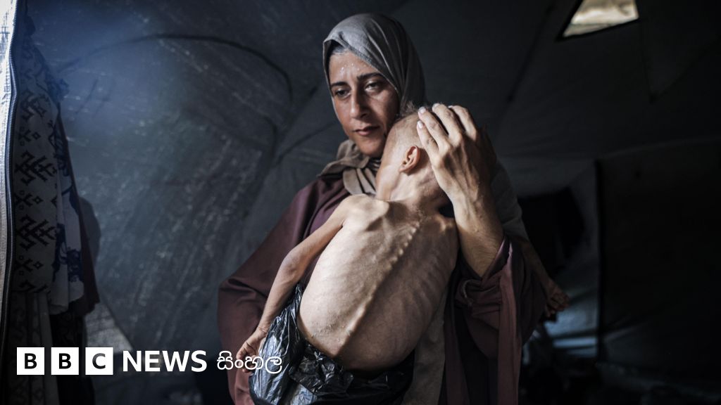 'ගාසාහි දරුවන් පෙළෙන කුසගින්න ලොවට පෙන්වන' ඡායාරූපයක්