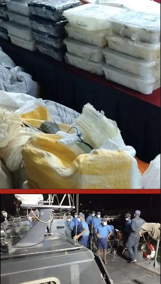 එම පාර්සල් තුළ අයිස් මත්ද්රව්ය කිලෝග්රෑම් 670ක්, හෙරොයින් කිලෝග්රෑම් 156ක් සහ හෂීස් කිලෝග්රෑම් 12කට ආසන්න ප්රමාණයක් තිබී හමුවූ බව ද නාවික හමුදා මාධ්ය ප්රකාශකවරයා සඳහන් කළේය.