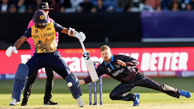 විස්සයි 20 ලෝක ශුරයින් වූ ශ්රී ලංකා කණ්ඩායමට නැමීබියා පන්දු යවන්නන් හමුවේ පන්දු වාර 19කදී සියලු දෙනා දැවී රැස් කිරීමට හැකි වූයේ ලකුණු 108ක් පමණි.