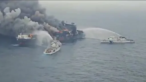 මේ අතර, දකුණු ඉන්දීය කේරළ ප්රාන්තයේ වෙරළට ආසන්නයේ අරාබි මුහුදේ සිංගප්පූරු ධජය සහිත භාණ්ඩ ප්රවාහන නෞකාවක ඇති වූ ගින්න මැඩපැවැත්වීම සඳහා ඉන්දීය වෙරළාරක්ෂක බලකාය අඛණ්ඩව උත්සාහ කරමින් සිටී.