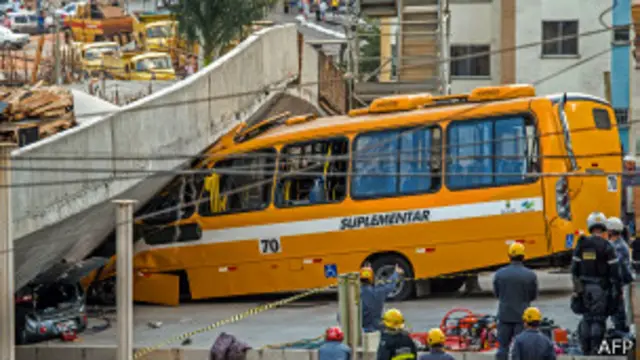 කිසිවකු නො සිටි ලොරි දෙකක්, මෝටර් රථයක් සහ මගීන් ගෙන යන බස් රියක ඉදිරිපස කොටස කඩා වැටුණ පාලමට යට වී ඇති බව බ්රසීලයෙන් ලැබෙන වාර්තා මගින් පැවසෙයි.