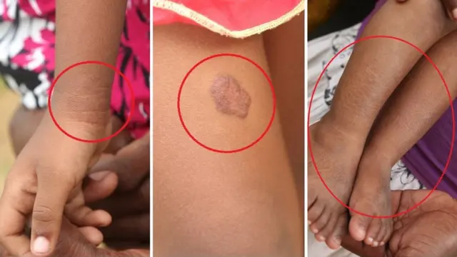 ඉන් එක් දරුවෙකුගේ පාදයේ අඟල් දෙකක පමණ බිබිලක් ලෙස ද අනෙක් දරුවාගේ හිසේ ද චර්ම රෝගය දක්නට ලැබේ.