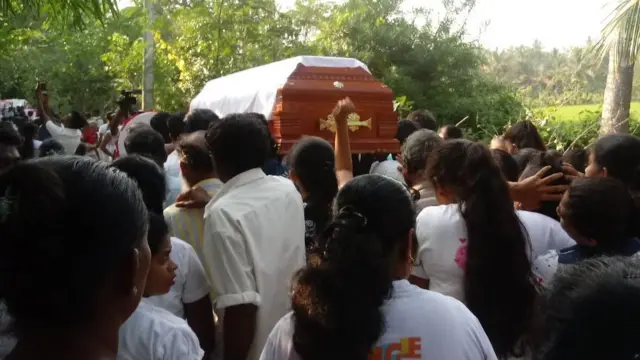 ඒ සඳහා ගම්වාසීන් විශාල පිරිසක් එක්ව සිටි අතර දැරියගේ දේහය පිටුපස යමින් ඔවුහු නිහඬ විරෝධතාවක නිරත වූහ.