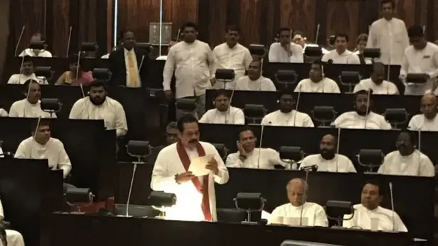 ජනාධිපතිවරයා විසින් අගමැති ධුරයට පත් කෙරුණු ජනාධිපති මහින්ද රාජපක්ෂ පාර්ලිමේන්තුවේ විශේෂ ප්රකාශය සිදු කිරීමෙන් අනතුරුව පාර්ලිමේන්තුව තුළ උණුසුම්කාරී වාතාවරණයක් හට ගැනිණි.