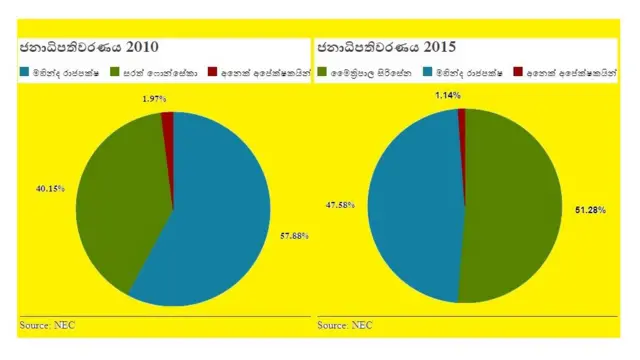 එම ජනාධිපතිවරණයේදී උතුරු නැගෙනහිර පළාත්වල වැඩි ඡන්ද සංඛ්යාවක් හිමි කර ගැනීමට මෛත්රීපාල සිරිසේන සමත් විය.