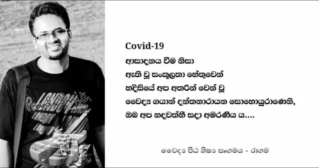මේ අතර වෛද්යවරයකු වන රමින්ද ගුණරත්න තම ට්විටර් ගිණුමේ සටහනක් තබමින් පවසන්නේ "අපට මරණ අවශ්ය නැත, අපට කිසිදු මරණයක් අවශ්ය නැත. කරුණාකර, ඔබේ මුහුණු ආවරණ නිසි ලෙස පැළඳ ගන්න, හොඳින් අත් පිරිසිදුව තබා ගන්න, දුරස්තභාවය තබා ගන්න සහ සමූහයා සමඟ එක්රැස් නොවන්න. ඔබට පිරිනමන විට, එන්නත ලබා ගන්න," යනුවෙනි.