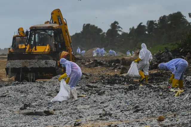 "සාගර දූෂණය හා හානියේ ප්රමාණය අපි තවමත් බලපෑම හා හානිය තක්සේරු කරමිනුයි ඉන්නේ. බලපෑම තක්සේරු කිරීම සඳහා අපි අදාළ සාම්පල එකතු කරමින් ඉන්නේ. ප්ලාස්ටික් කැට ගොඩක් විහිදිලා තියෙනවා," යනුවෙන් නාරා ආයතනයේ ජ්යෙෂ්ඨ විද්යාඥ මහාචාර්ය දීප්ත අමරතුංග බීබීසී සිංහල සේවය සමග පැවසීය.