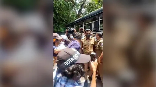 "අපි ඉදිරියේ පොලිස් බස් රථයක් නැවැත්තුවා. ඔවුන් අපිත් එක්ක සිටි අය බස් එකට දාගන්න පටන් ගත්තා. අපේ දෙන්නෙක් එතකොටත් ලයිව් ස්ට්රිමින්ග් කරමින් සිටියේ."
