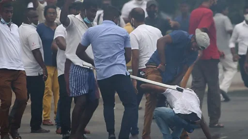 රාජපක්ෂ හිතවාදීහු අරගල භූමියේ සිටි සාමකාමී උද්ඝෝෂකයන් ගණනාවකට දරුණු ලෙස පහර දුන්හ.