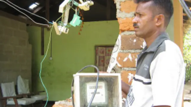කන්තලේ සූරියපුර ගමට වදින අලියකු විදුලියට අභියෝග කරන්නේ විදුලි මීටරය විසන්ධි කිරීම මගින්.