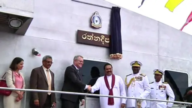 ශ්රී ලංකා නාවික හමුදාවට එක් කෙරෙන නව බෝට්ටු දෙක භාර ගැනීමේ අවස්ථාවට ආරක්ෂක ලේකම් ගෝඨාභය රාජපක්ෂ සහ නාවික හමුදාපති වයිස් අද්මිරාල් ජයන්ත පෙරේරා ඇතුළු ආණ්ඩුවේ නියෝජිතයෝ සහභාගී වූහ.