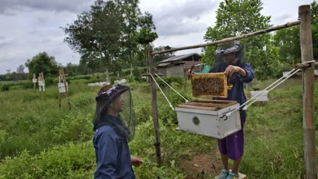 වගා බිම් වට කොට මී මැසි පොදි සහිත කඹ ඇටවීම තායි ගොවීන්ගේ උපක්රමයයි.