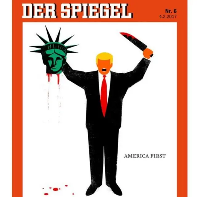 ජනාධිපති ඩොනල්ඩ් ට්රම්ප් ඇමරිකා එක්සත් ජනපදයේ ජාතික සංකේතයක් ලෙස සලකන නිදහසේ ප්රතිමාවේ හිස කඳෙන් වෙන් කරන අයුරු දැක්වෙන කාටුනයක් මුල් පිටුවේ පළකිරීම පිළිබඳව 'ඩෙයර් ස්පීගල්' ජර්මානු සඟරාවට විවේචන එල්ලවෙමින් පවතී.