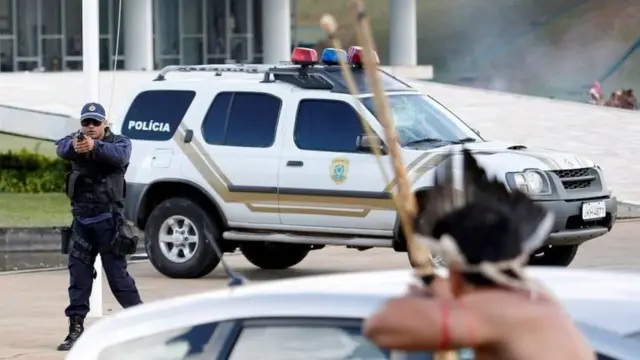 ආදිවාසී පිරිසක් මාර්ග බාධකය වෙත ළඟාවීමට උත්සාහ කළ බැවින් තමන්ට බලය යෙදීමට සිදුවූ බව බ්රසීල පොලිසිය පවසයි.
