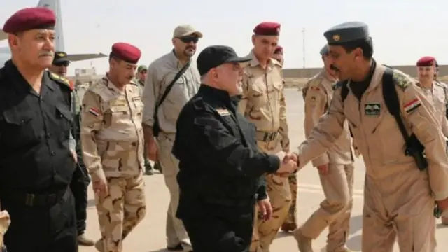 IS කැරලිකරුවන් පරාජය කරමින් මෝසුල් නගරය ජයගත් ඉරාක හමුදාවට සුබ පැතීම සඳහා ඉරාක අගමැති හයිඩර් අල් අබාඩි මෝසුල් නගරයට පැමිණෙයි.