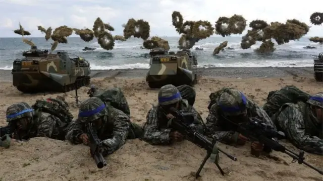 ඇමෙරිකානු සොල්දාදුවන් 29,000 ක් පමණ දකුණු කොරියාවේ ස්ථාන ගතකර ඇති අතර, දෙරට සොල්දාදුවෝ වාර්ෂිකව මහා පරිමාන යුද අභ්යාසවල නිරත වූහ. මෙය බොහෝ විට හඳුන්වන ලද්දේ 'යුද ක්රීඩා' යනුවෙනි.