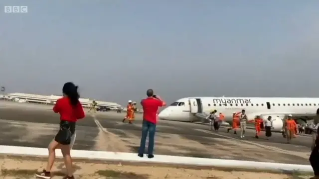 ගොඩ බැස්වීමේදී ක්රියාත්මක කරන ගියරයේ ඇති වූ දෝෂයක් නිසා ඉදිරිපස රෝද ක්රියාත්මක නොවූ ගුවන් යානයක් ආරක්ෂිතව ගොඩ බැස්වීමට මියන්මාර් ගුවන් නියමුවෙකු සමත්ව තිබේ.