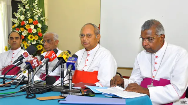 යුද්ධයේ අවසන් අදියරේ දී ශ්රී ලංකා යුද හමුදාව රසායනික අවි මෙන් ම පොකුරු බෝම්බ වලින් ද පහර දුන් බවට යාපනය සහ මන්නාරම රද ගුරු දෙ පළ පළ කර තිබුණ අදහස් සම්බන්ධයෙන් ප්රතිචාරය දක්වමින් කොළඹ රදගුරු මැල්කම් රංජිත් කාදිනල් තුමා මාධ්යයට කියා තිබුණේත් රදගුරු හිමිවරුන් දෙ පල කරන චෝදනා ශ්රී ලංකා කතෝලික සභාවට අනුමත කළ නො හැකි බවයි.